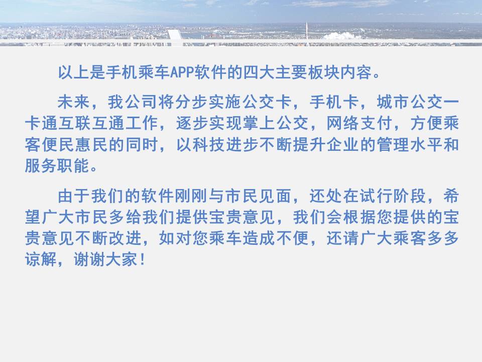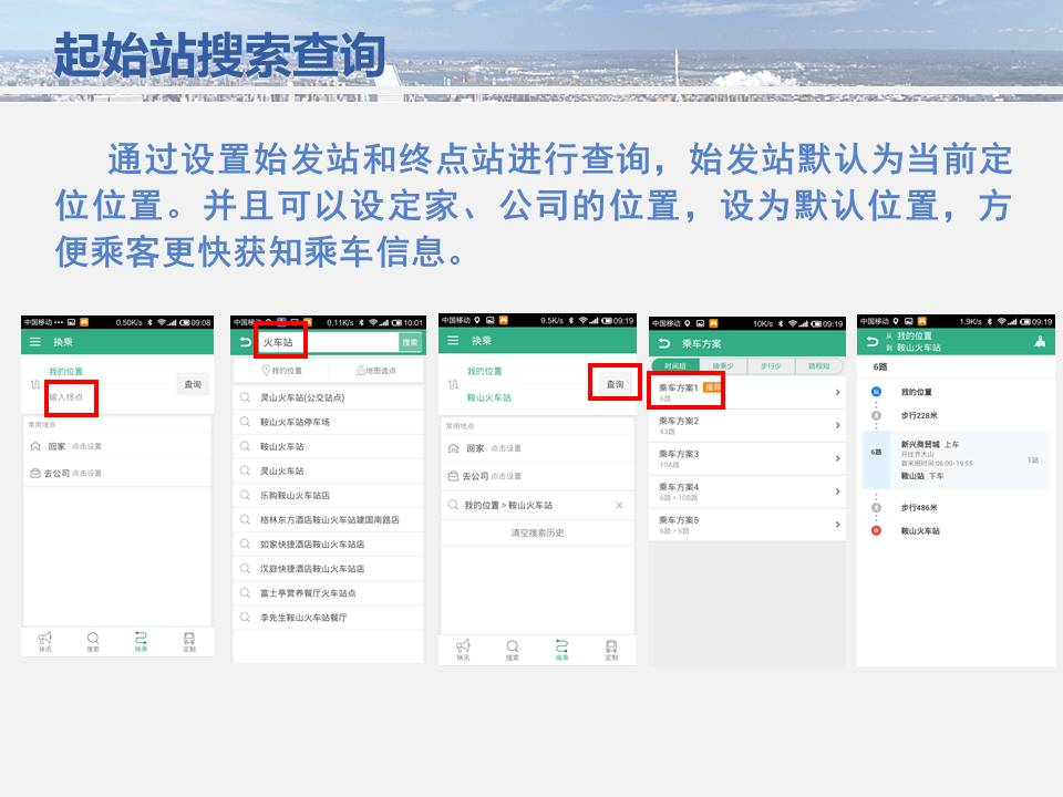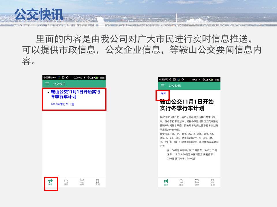 點(diǎn)點(diǎn)手機(jī)就可以看到公交車(chē)目前所在的位置,精準(zhǔn)地掐好出門(mén)時(shí)間,從而避免在惡劣天氣或高峰期苦苦候車(chē),工作人員坐在調(diào)度室內(nèi)就能掌握車(chē)輛在路上的運(yùn)行情況……為方便廣大市民出行,基于安卓平臺(tái)開(kāi)發(fā)的“鞍山掌上公交”官方APP將于11月15日正式上線試運(yùn)行,適用于蘋(píng)果IOS系統(tǒng)的APP將于明年初上線,市民可在公共交通總公司官網(wǎng)下載該軟件,并實(shí)現(xiàn)37條公交線路車(chē)輛實(shí)時(shí)查詢的便利服務(wù)。
